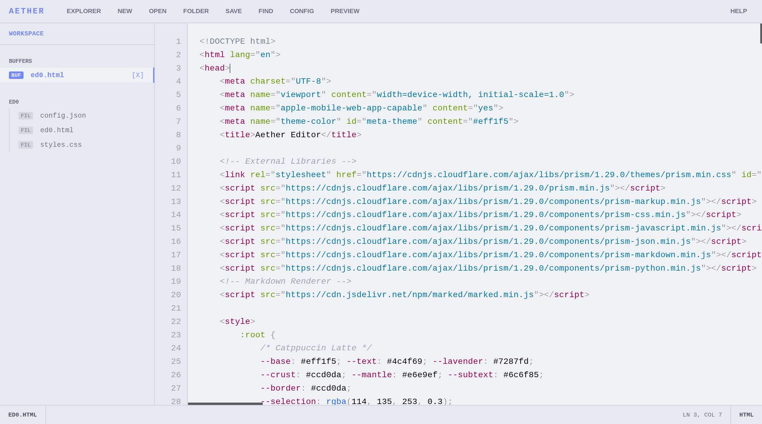 Aether is configured through a virtual buffer named 'config.json'.
